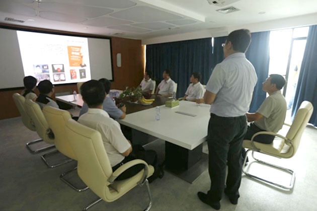 2014年8月30日人社部就業(yè)促進(jìn)司副司長 尹建堃 一行到盛天彩調(diào)研指導(dǎo)工作